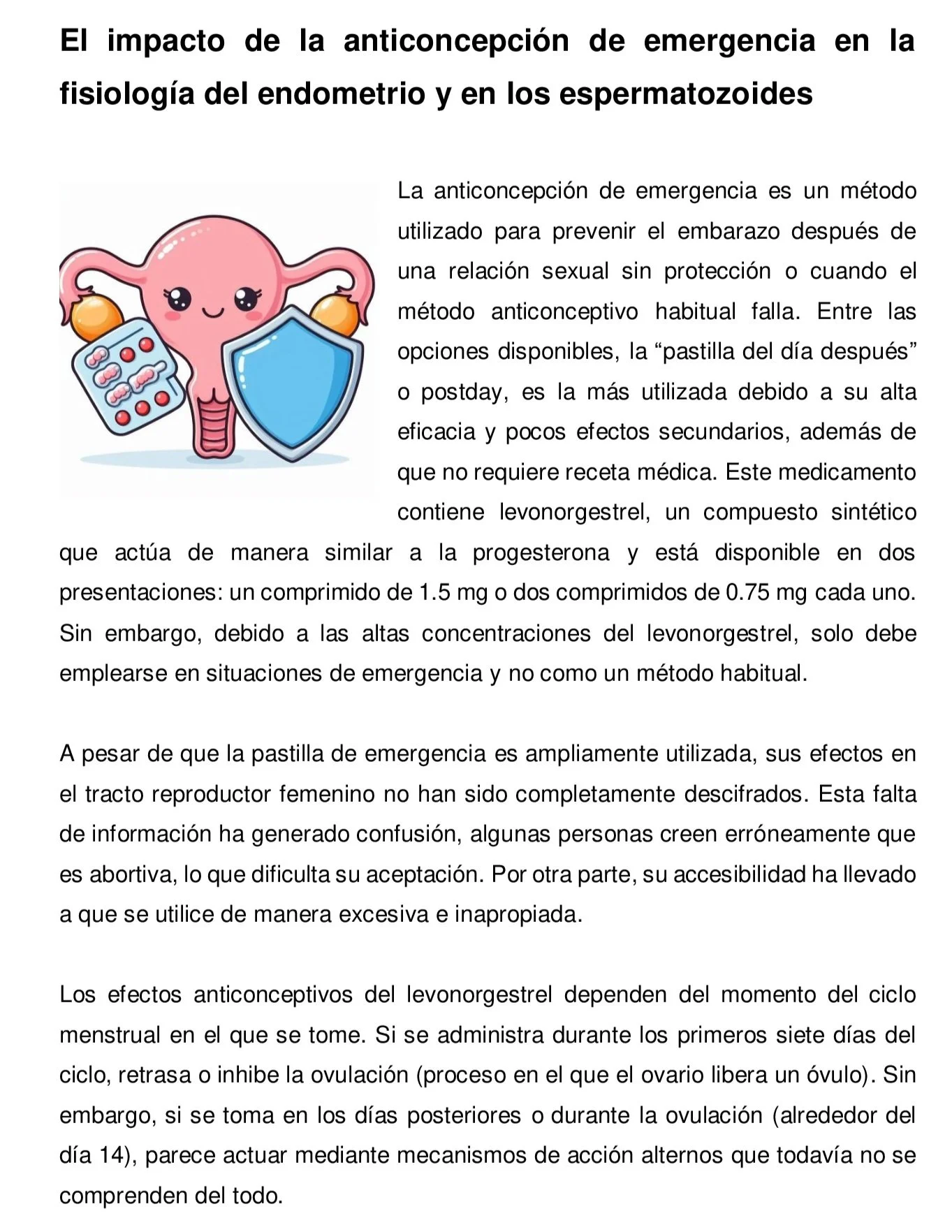 El impacto de la anticoncepción de emergencia en la fisiología del endometrio y en los espermatozoides